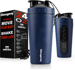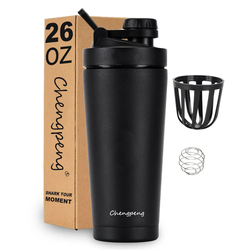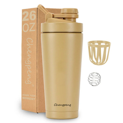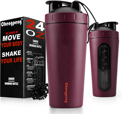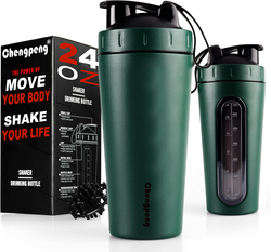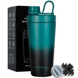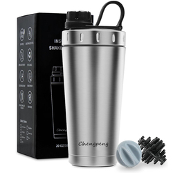 Groothandel Chengpeng Patent Nieuw Ontwerp Rvs Shaker Fles Dubbele Wand Geïsoleerde Shaker Fles Met Knop Deksel