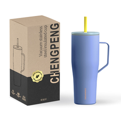 40oz özel paslanmaz çelik Tumbler yalıtımlı seyahat kulplu bardak ve saman yeniden kullanılabilir yalıtımlı fincan